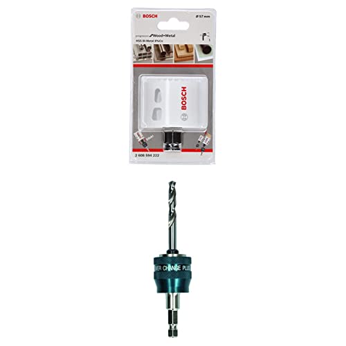 Bosch Professional Hole Saw Progressor for Wood & Metal (Ø 57 mm) + 1x Power Change Plus Adapter (Socket 3/8" hexagonal shank, HSS-G Drill Bit Ø 7.15 x 85 mm)