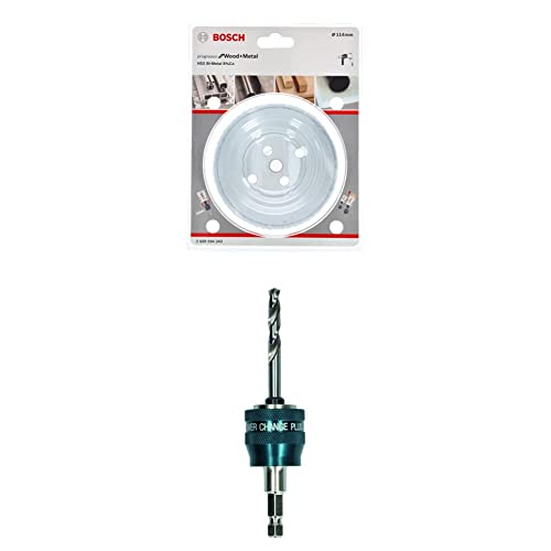 Bosch Professional Hole Saw Progressor for Wood & Metal (Ø 114 mm) + 1x Power Change Plus Adapter (Socket 3/8" hexagonal shank, HSS-G Drill Bit Ø 7.15 x 85 mm)