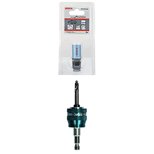 Bosch Professional Hole Saw Sheet Metal (Ø 20 mm) + 1x Power Change Plus Adapter (Socket 3/8" Hexagonal Shank, Incl. HSS-Co Drill Bit 7.15 x 65 mm)