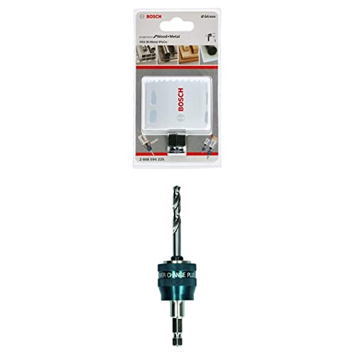 Bosch Professional Hole Saw Progressor for Wood & Metal (Ø 64 mm) + 1x Power Change Plus Adapter (Socket 3/8" hexagonal shank, HSS-G Drill Bit Ø 7.15 x 85 mm)