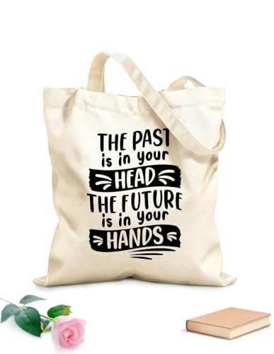 AILOONG the past is in your head the future is in your hands typography print design Reusable Shopper Bags 12 oz thick fabric Foldable 35x40cm Large