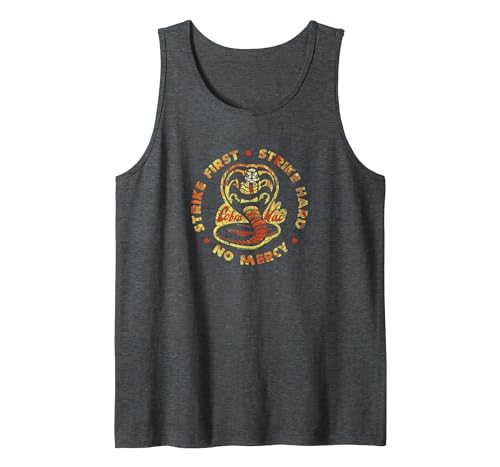 Cobra Kai Strike First Strike Hard Tank Top, Men, Dark Heather Grey, X-Large