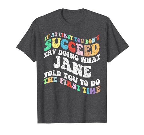 Groovy if at First You Don't Succeed Try Doing What Jane T-Shirt, Men, Dark Heather Grey, X-Large