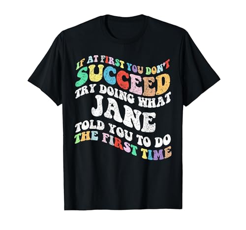 Groovy if at First You Don't Succeed Try Doing What Jane T-Shirt, Men, Black, X-Large