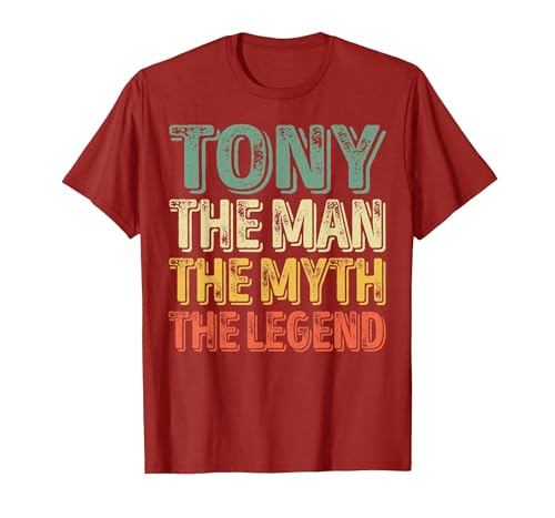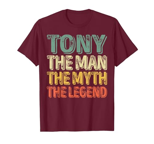 Tony The Man The Myth The Legend Shirt First Name Tony T-Shirt, Men, Burgundy, X-Large