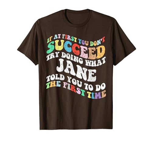 Groovy if at First You Don't Succeed Try Doing What Jane T-Shirt, Men, Brown, X-Large