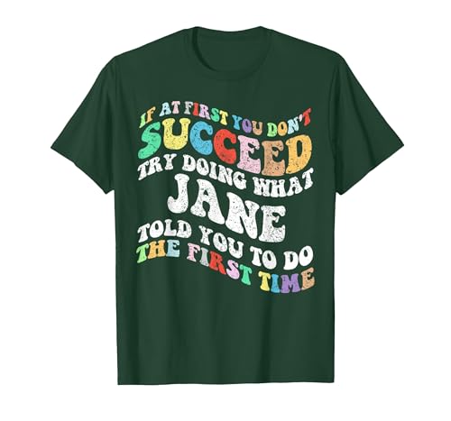Groovy if at First You Don't Succeed Try Doing What Jane T-Shirt, Men, Dark Green, X-Large