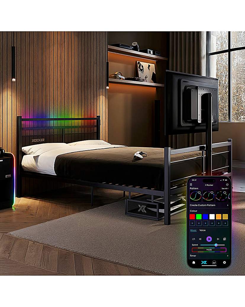 X Rocker Gaming Bed Somnus Neo Fibre LED with TV Bracket Console Storage Black