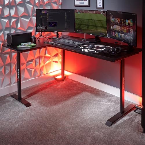 X-Rocker Panther XL 155cm x 108cm, L-Shaped Gaming Desk - Reversible Corner Design, Large Dual Monitor, Sturdy Metal Frame for Adults & Kids - Carbon Black - Mouse Mat Included