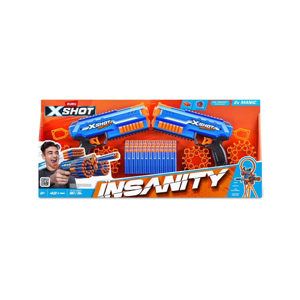 Zuru X-Shot Insanity Manic Twin Pack 48xAir Pocket Technology Foam Darts
