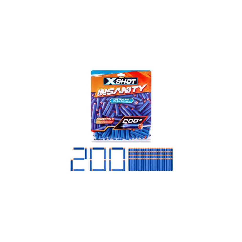 XSHOT Insanity 200 Dart Refill Pack by ZURU, Compatible with X-Shot and Other Brands, Blaster Outdoor Toys