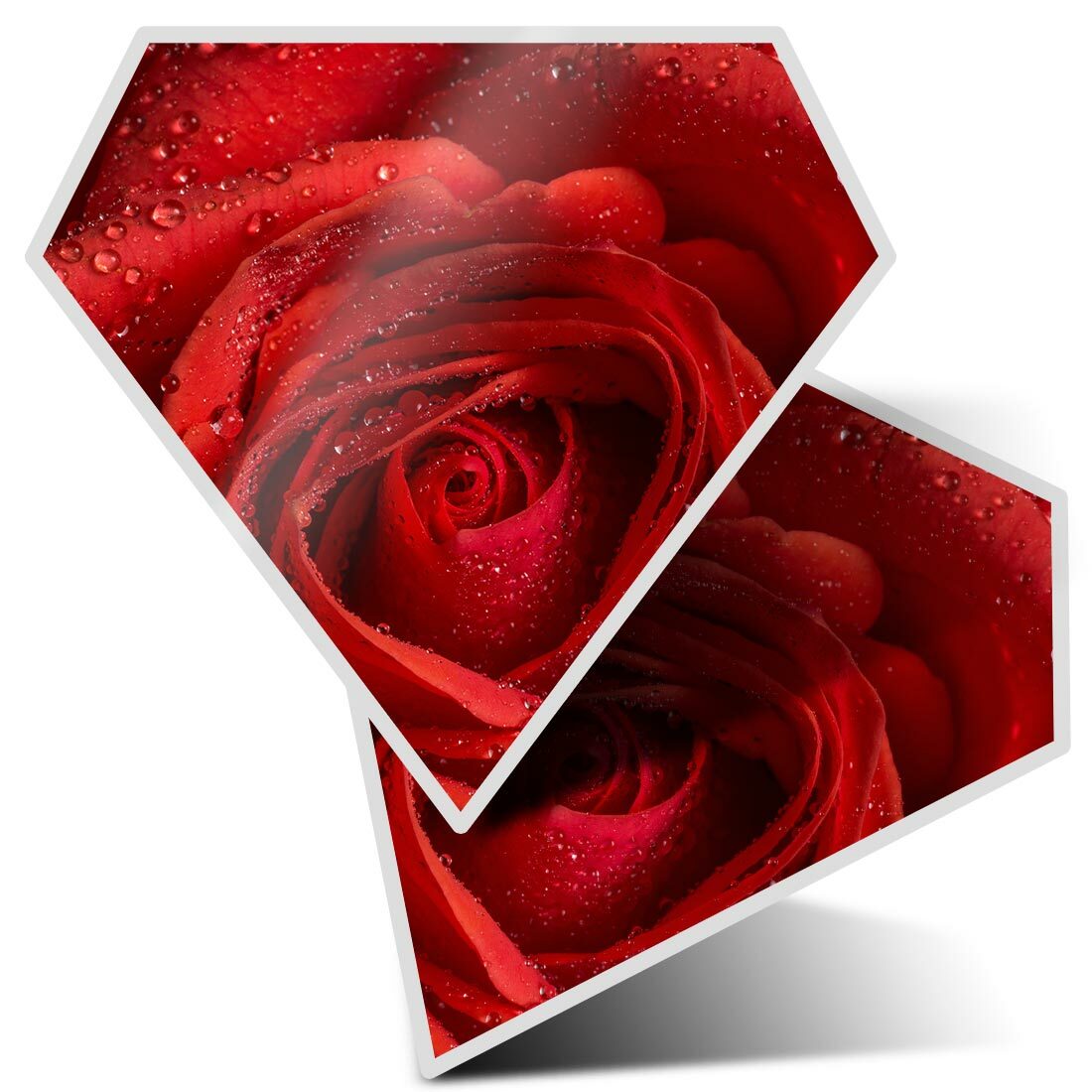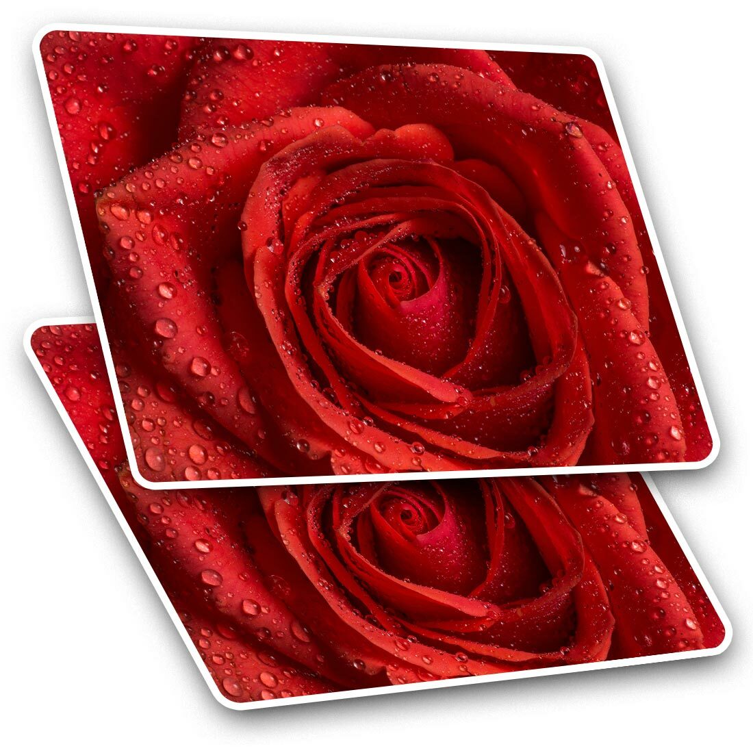 2 x Diamond Stickers 10 cm - Red Rose Macro Shot Water Droplets #16707