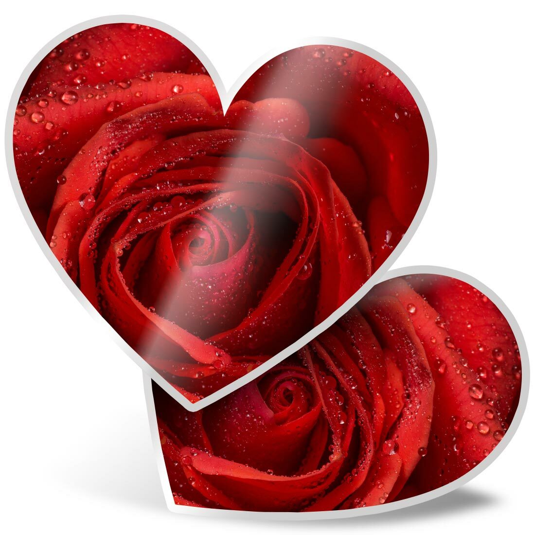 2 x Heart Stickers 7.5 cm - Red Rose Macro Shot Water Droplets #16707
