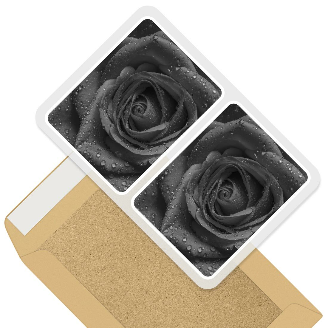 2 x Diamond Stickers 7.5cm BW - Rose Macro Shot Water Droplets #37626