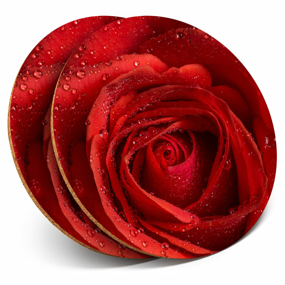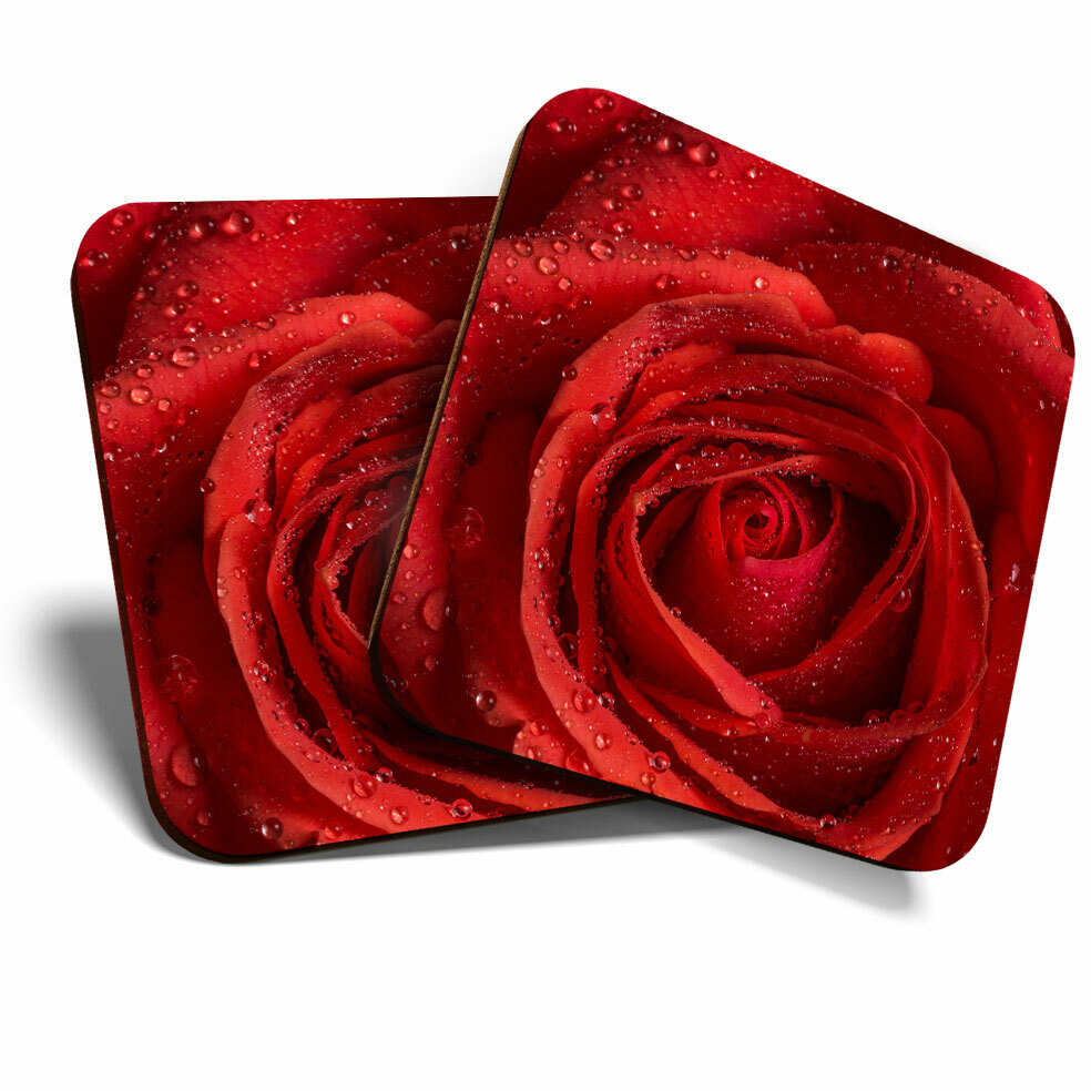 2 x Coasters - Red Rose Macro Shot Water Droplets Home Gift #16707