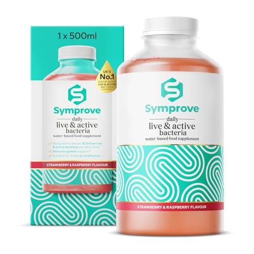 Symprove Probiotic, Strawberry Flavour, Fermented to a Level of at Least 10 Billion CFUs per 70ml Shot, Water-Based, Dairy & Gluten Free, Vegan (1 x 500ml)