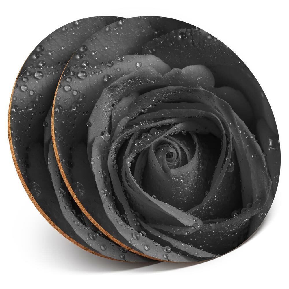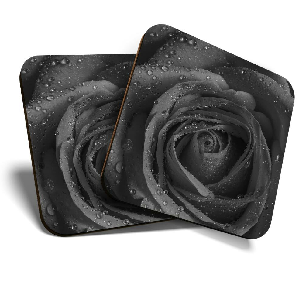 2 x Coasters bw - Rose Macro Shot Water Droplets #37626