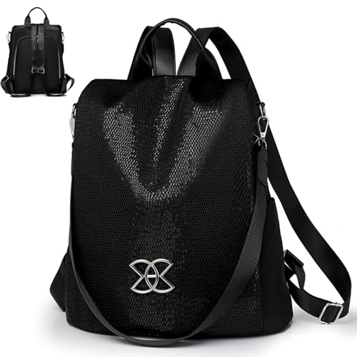 Anti-Theft PU Backpack - Oxford 33x28x16cm | Lightweight and Versatile Casual Backpack 3 Ways to Use Shoulder Bag for Women, Daily, Travel, School and Work, Black Sequins, Se référer au descriptif