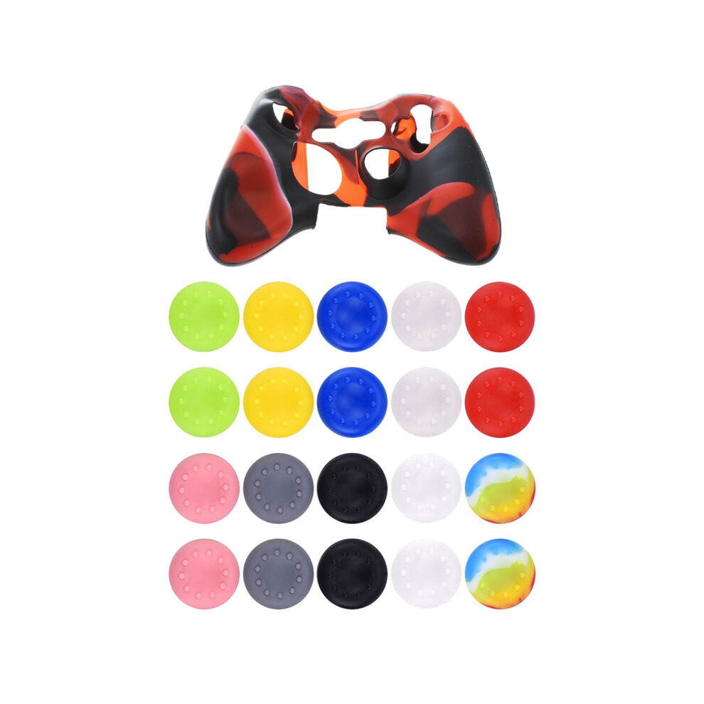 1 Pcs Silicone Cover Case Skin Xbox 360 Controller Camo+Black & 20Pcs Silicone Thumb Grips Caps Stick Protect Cover