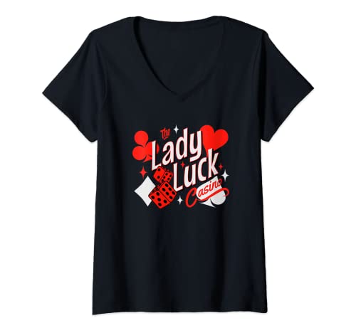Womens Lady Luck Rockabilly 50's Casino Games Card Player Gift V-Neck T-Shirt
