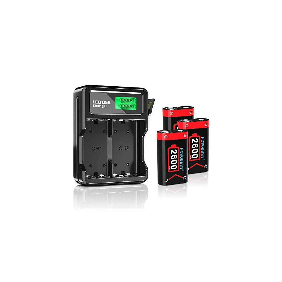 POWOBEST Controller Rechargeable Battery Pack for All Xbox One and Xbox Series X|S, with 3 Rechargeable 2600mAh Battery And LCD Charger