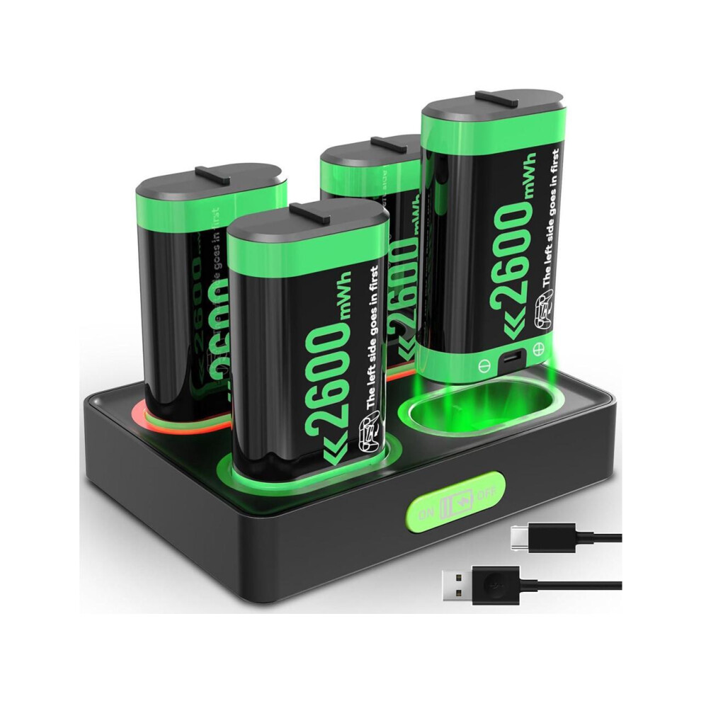 Rechargeable Battery Pack Charger Station for Xbox Controller, 4 x 2600mWh Rechargeable Batteries for Xbox Controller Battery Pack for Xbox One/Xbox S