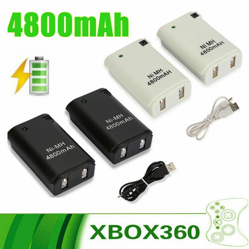 2 Pack 4800mAh Rechargeable Battery + USB Charger Cable for XBox 360 Controller