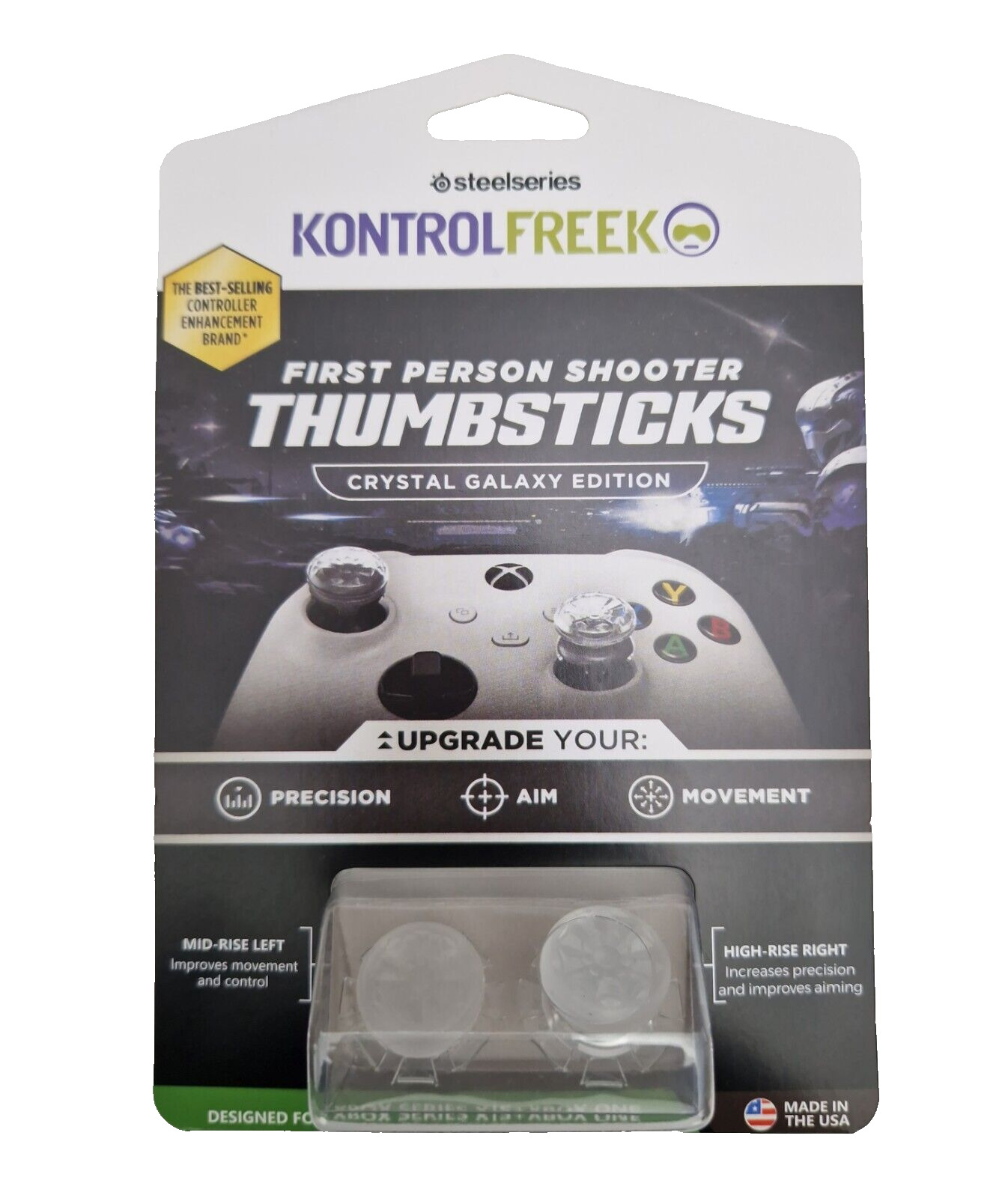 KontrolFreek FPS Freek Galaxy Crystal for Xbox One and Xbox Series X Controller | Performance Thumbsticks | 1 High-Rise, 1 Mid-Rise | Crystal