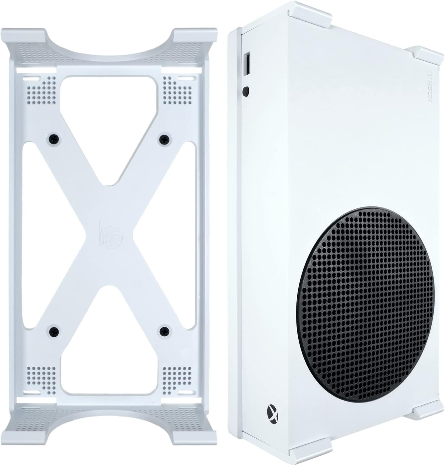 Q-View Xbox Series S Wall Mount & Controllers Bracket Set by Q-View - Secure Under Desk Mounting - Signature X Design - Screws and Fixings Included - Made In UK - Plastic - White