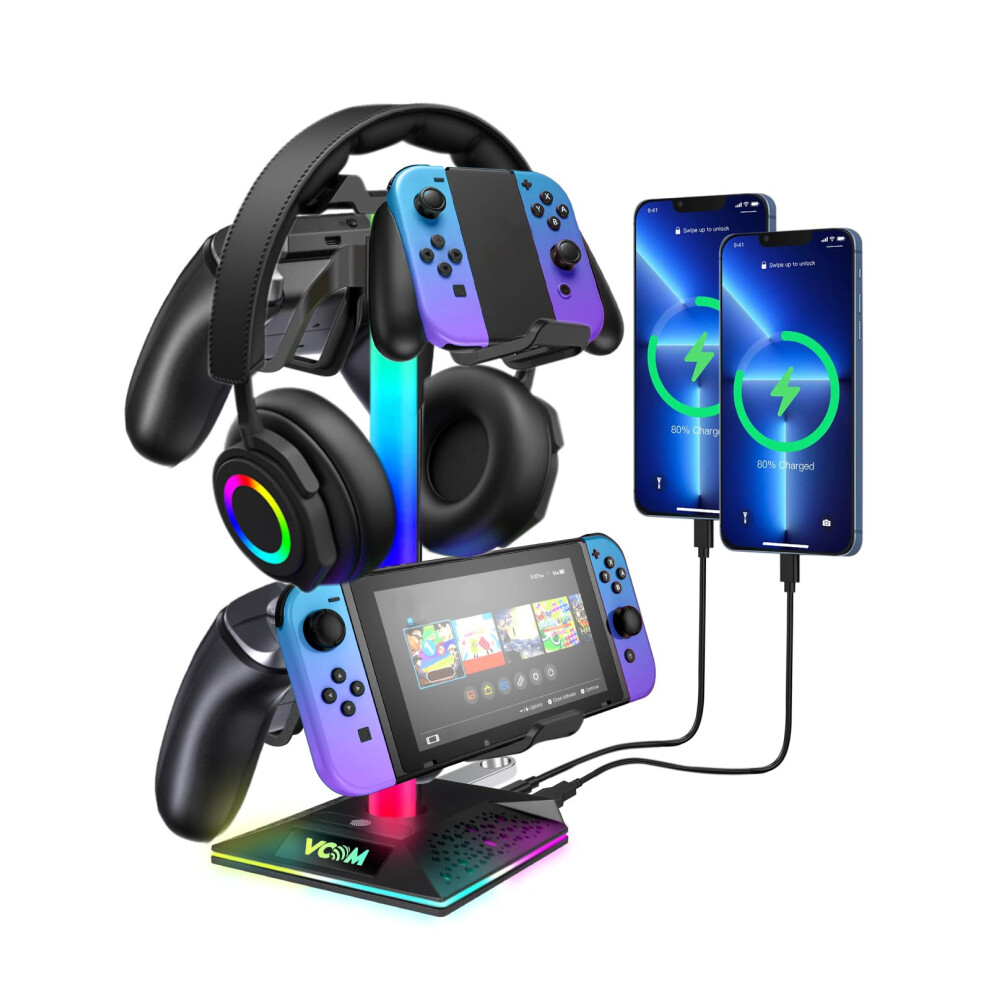 VCOM RGB Headphone Stand, Headphone holder with 2 USB and 1 Type-C Ports-Gaming Headset Stand with 10 Light Modes for Gamer Xbox PS5 Gameing Desk