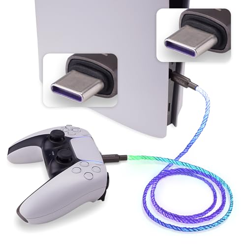 playvital 3.28FT Illuminated Charging Cable for ps5 for ps5 Edge Controller, Type C to C Charging Cord for Gamepad, Universal LED Light Up Data Cord for Xbox Core/Elite Series 2/Switch Pro Controller