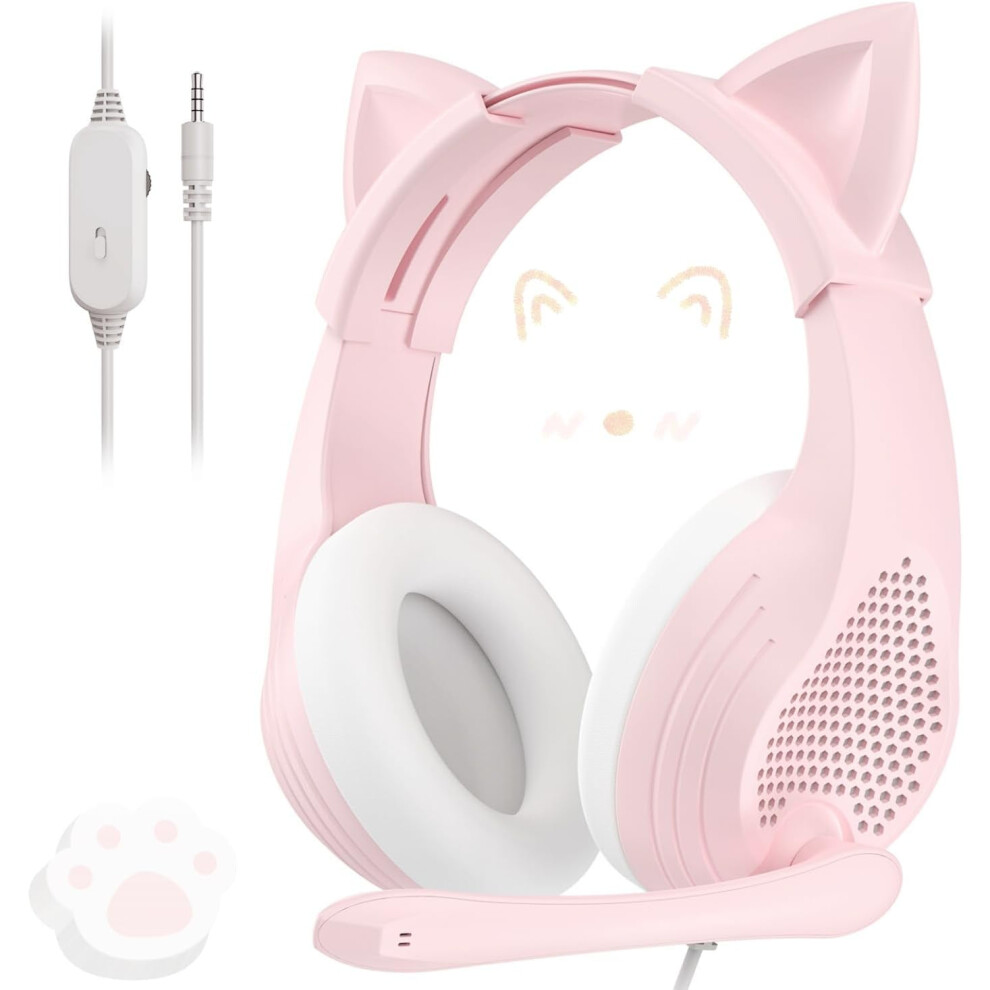 Pink Headset with Cat Ears Retractable Microphone Surround Sound High Quality Speakers for PS4 Xbox PC Mobile