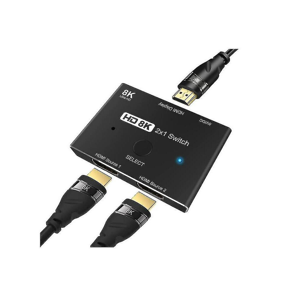 Hdmi Switch Splitter, Bidirectional Hdmi Switch 2 In 1 Out, 8K Ultra Hd 60Hz 48Gbps For Xbox Ps5 Pc Monitor Tv Projector, Plug And Play, Fast And