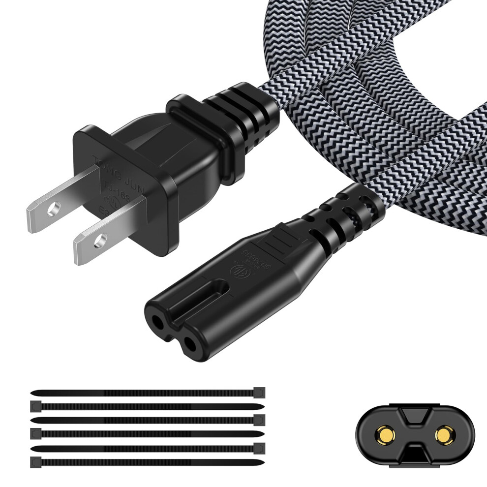 AC Power Cord 15FT, Nylon Braided 2 Prong C8 Replacement Cable for Xbox PS5 Printer Monitor