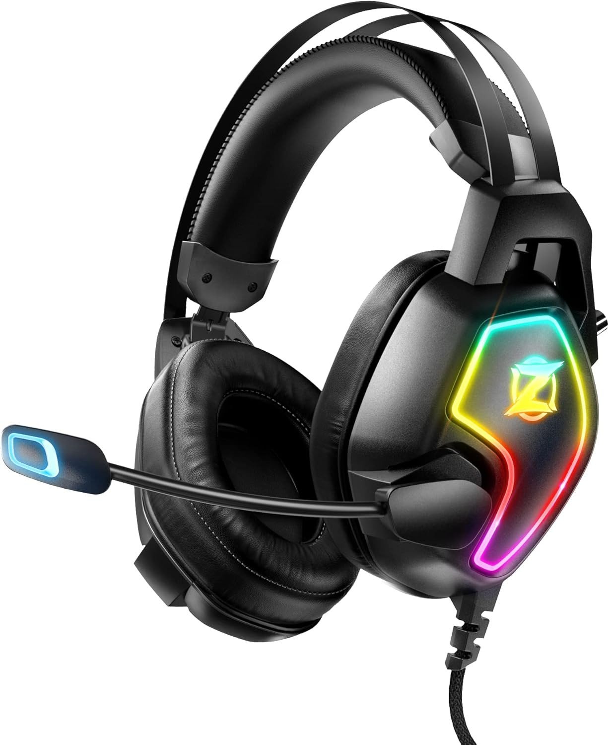 Tatybo Gaming Headset for Ps5 Ps4 Xbox Series X/S, Wired Gaming Headphones for Switch Xbox One PC Stereo Surround Sound Noise Cancelling Mic LED Lights