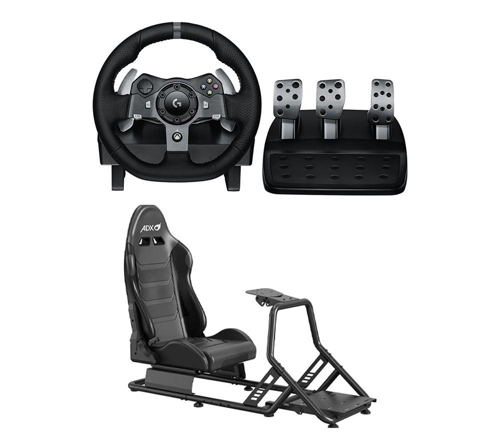 Adx Firebase RS03 Racing Simulation Seat + Driving Force G920 Xbox + PC Racing Wheel & Pedals Bundle, Black