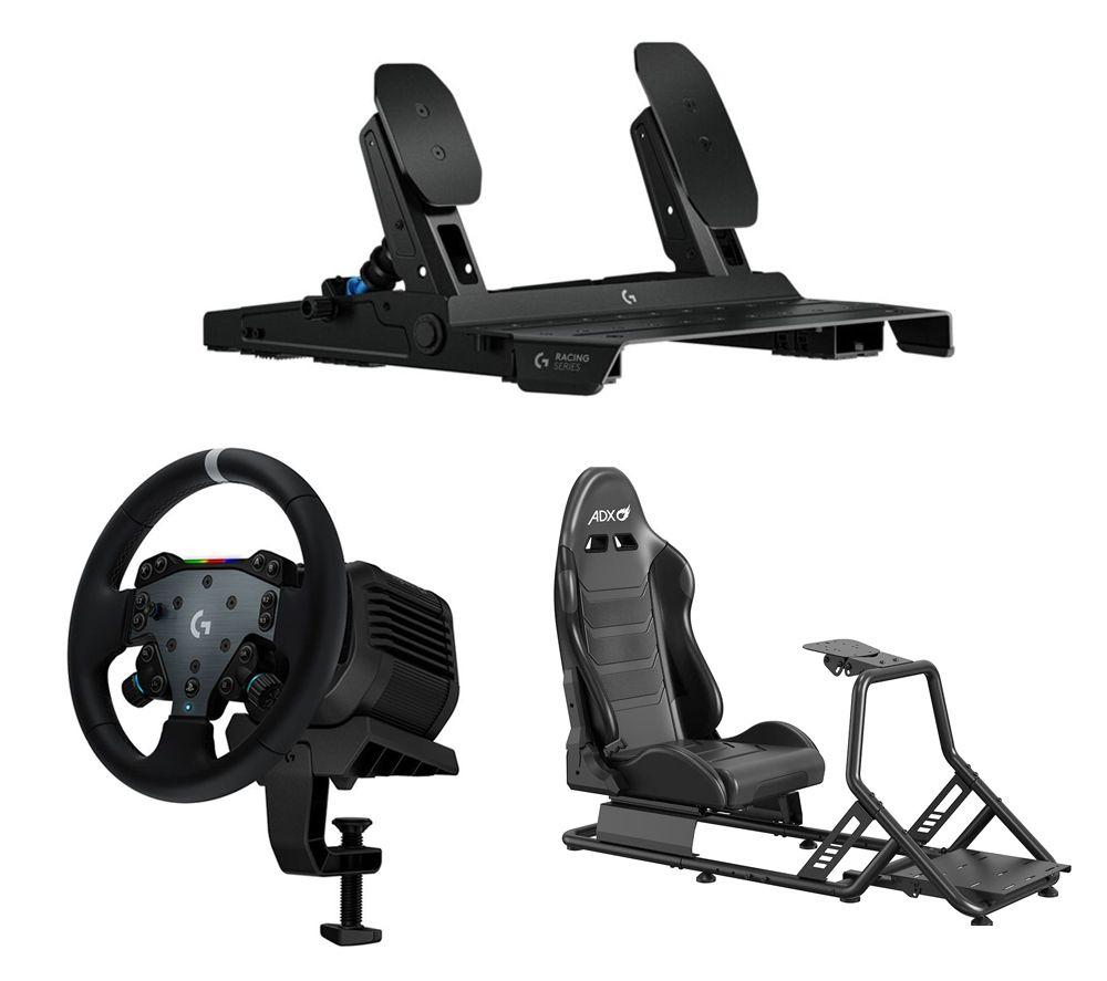 Adx Firebase RS03 Racing Simulation Seat, G RS Pedal Set & G RS50 Racing Wheel for PC & Xbox Bundle, Black