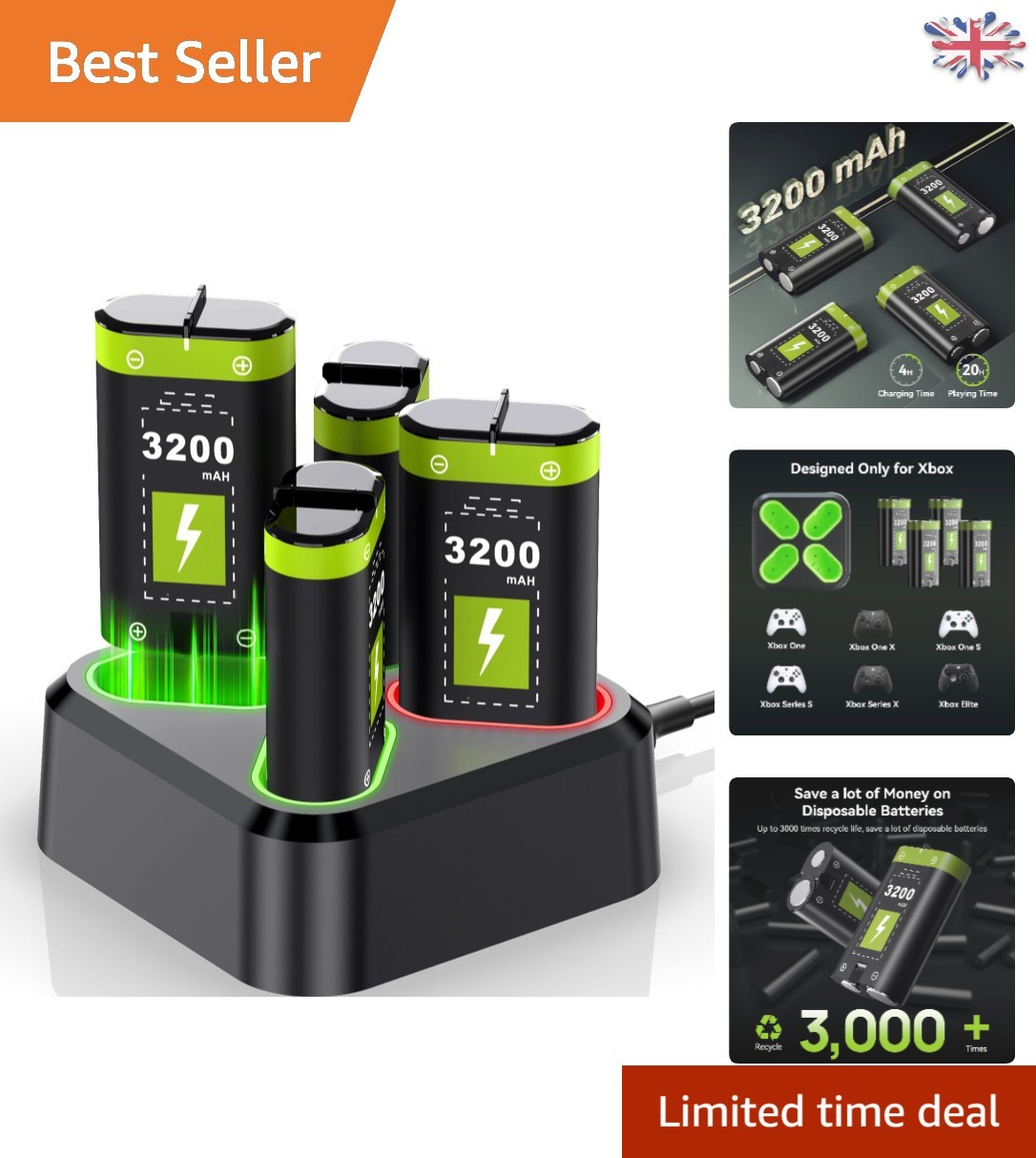 4x3200mAh Rechargeable Xbox Controller Battery Packs with Fast Charging Station