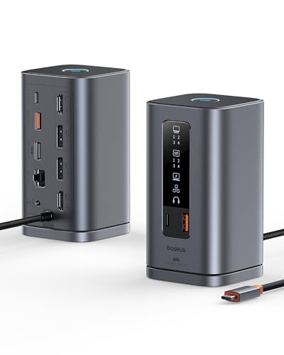 Baseus Docking Station Spacemate Series 11-in-1 Docking Station 3 Monitors with 2 x HDMI 1 x DP 4K @ 60Hz, 3 x USB-A/C 10 Gbps, 1 Gbps Ethernet, 100 W PD, Compatible with Laptop