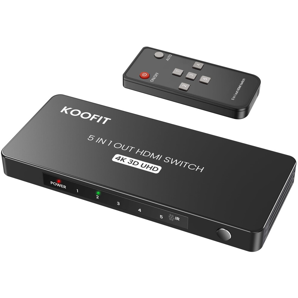 HDMI Switch 5 In 1 Out, Switch HDMI Splitter 4K with Remote, Auto Switcher Supports 4K 3D UHD HDR for PS5, PS4, PS3, Roku, DVD, Blu-ray, Xbox, PC, TV