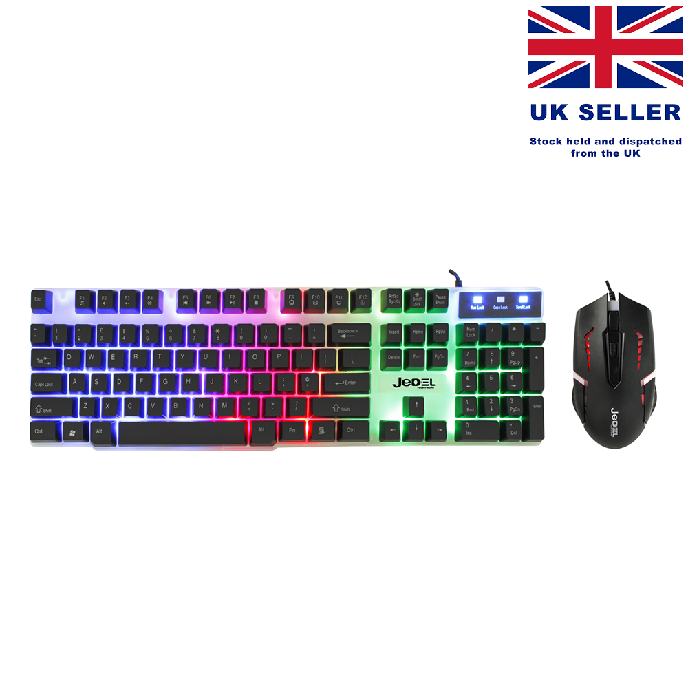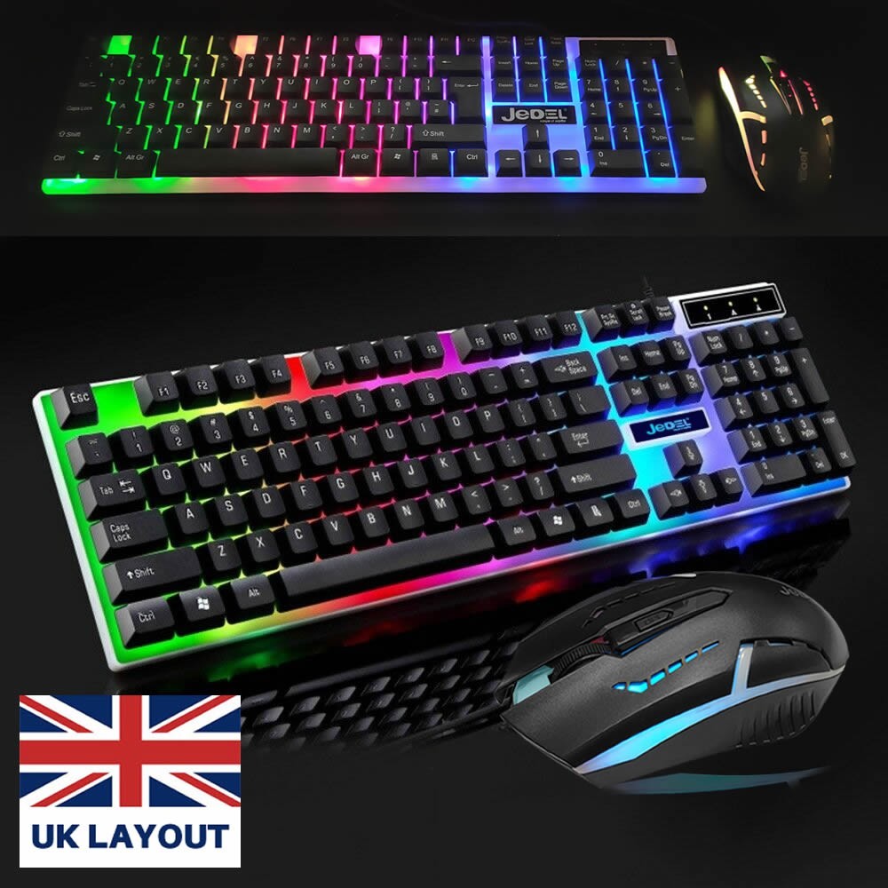 RGB LED Gaming Keyboard And Mouse Set USB For PC Laptop PS4 PS5 Xbox One UK