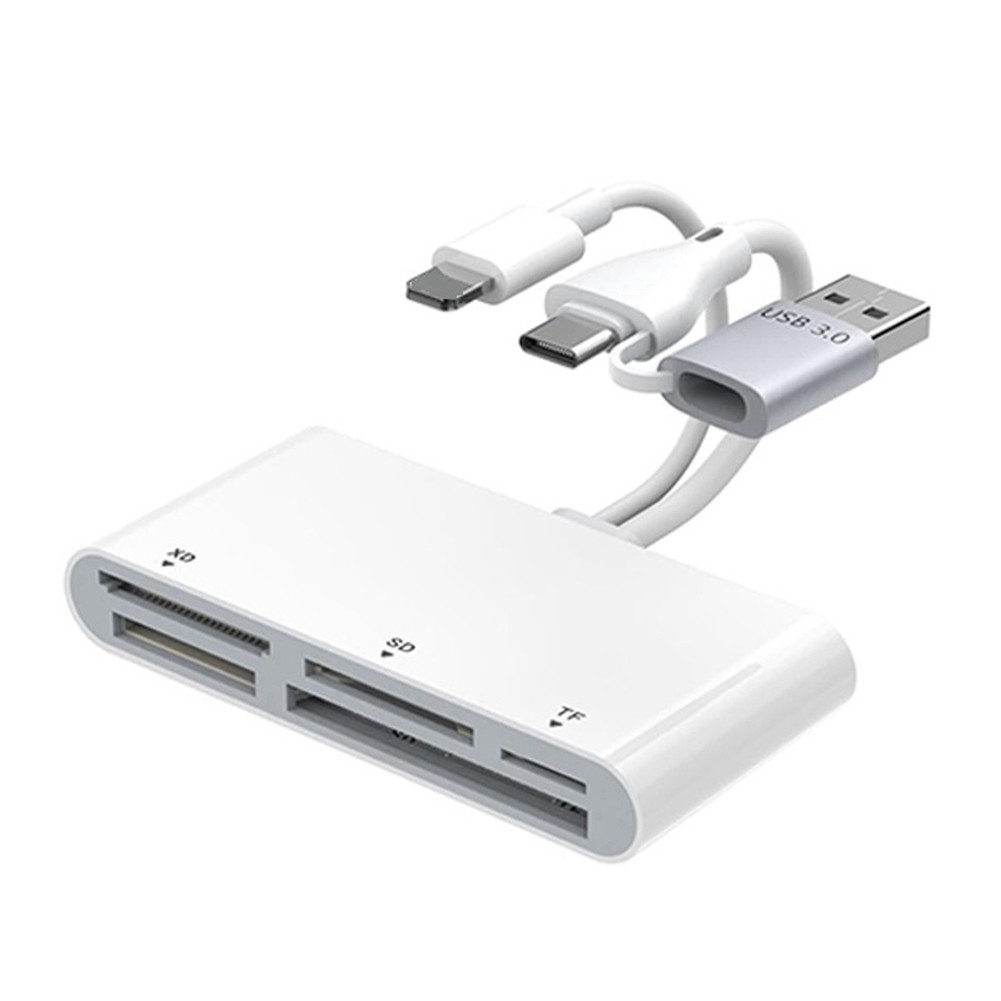 XD Card Reader, SD Reader for iPhone, 3 in 1 SD/TF/XD White