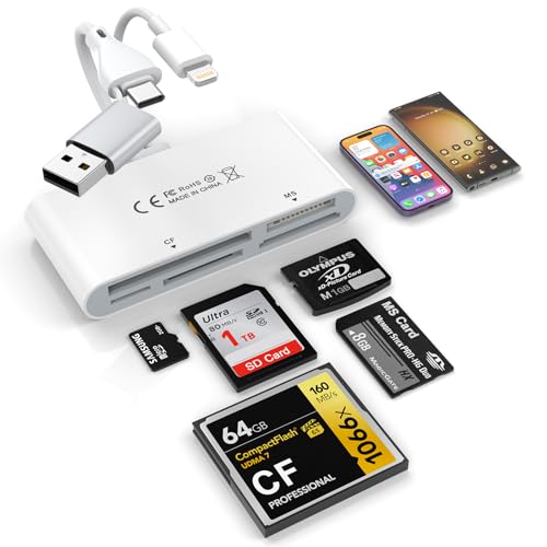 7 in 3 USB C + USB 3.0 + Lightning Multi Card Reader Adapter for SD, CF, Micro SD, XD, MS Cards, 5Gbps Memory Card Reader SD Card Reader Reader Adapter for iPhone 16 15 14/Samsung/PC/Windows/Mac/Linux