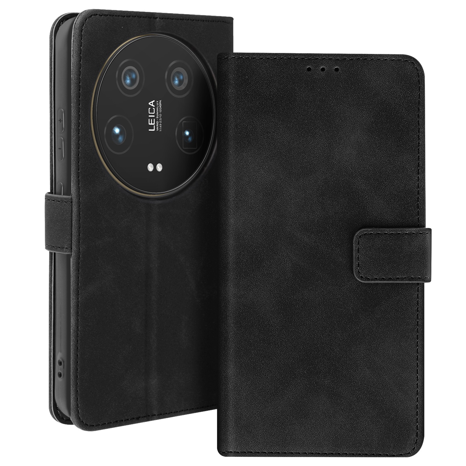 (Black) Case for Xiaomi 14 Ultra Wallet Side Buckle Pu Leather Magnetic Card Slots Holder
