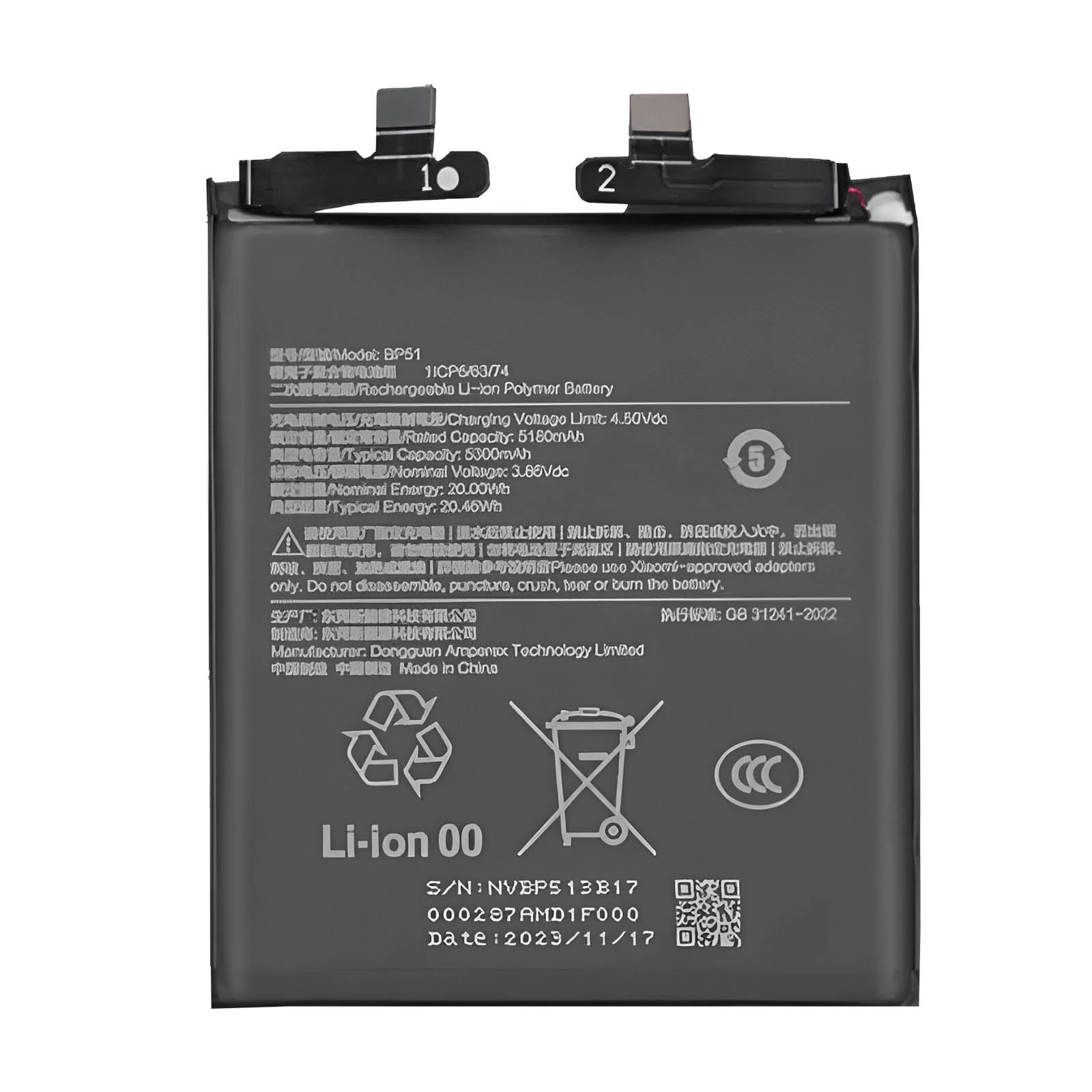 Clappio Internal battery for Xiaomi 14 Ultra 5000 mAh model BP51