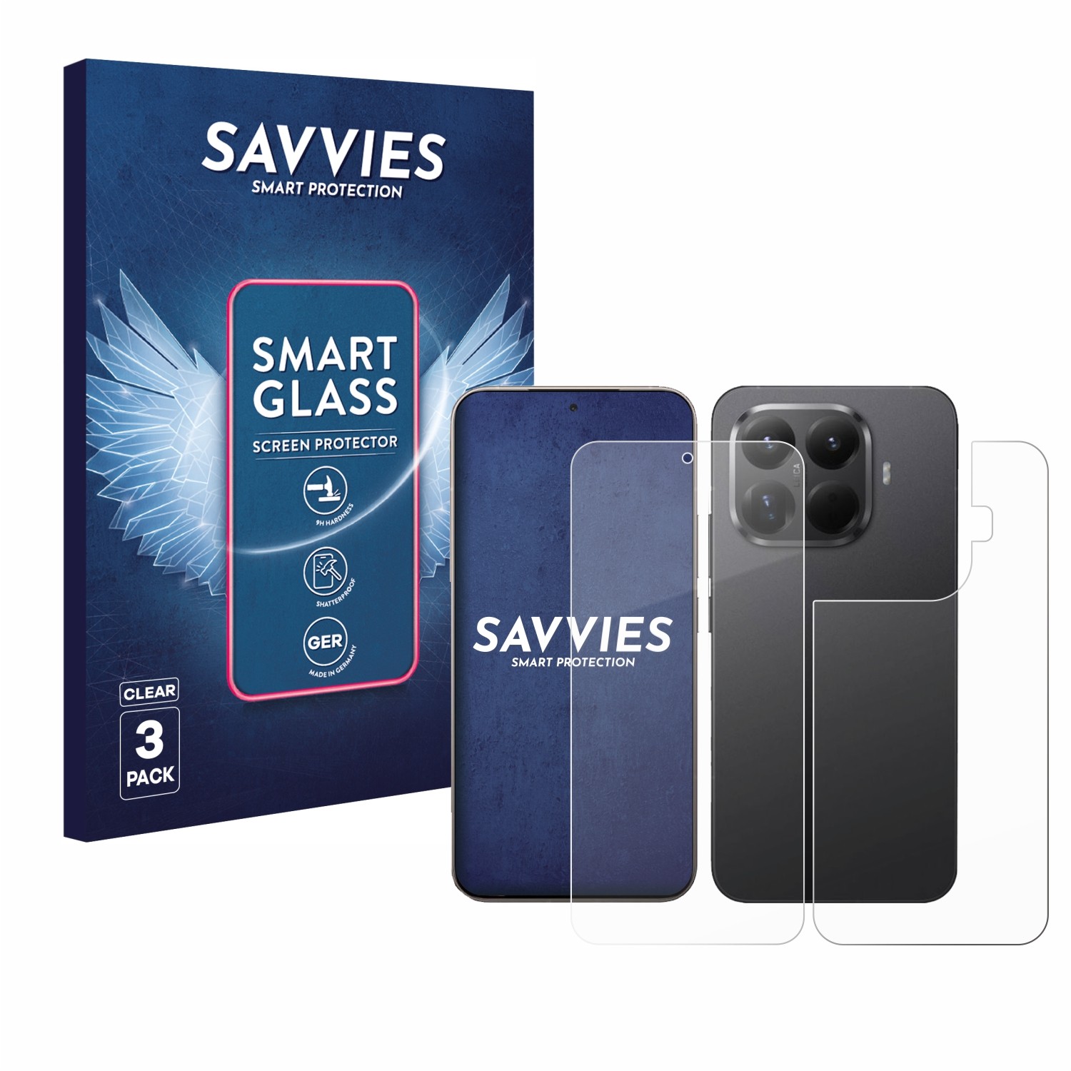 Savvies 3 Pack Tempered Glass Film compatible with Xiaomi 15T Pro (Front+Back) 9H Screen Protector, Glass-Foil, HD-Clear, Bubble-Free, Anti-Fingerprint, Anti-Scratch, Armor Protection Film