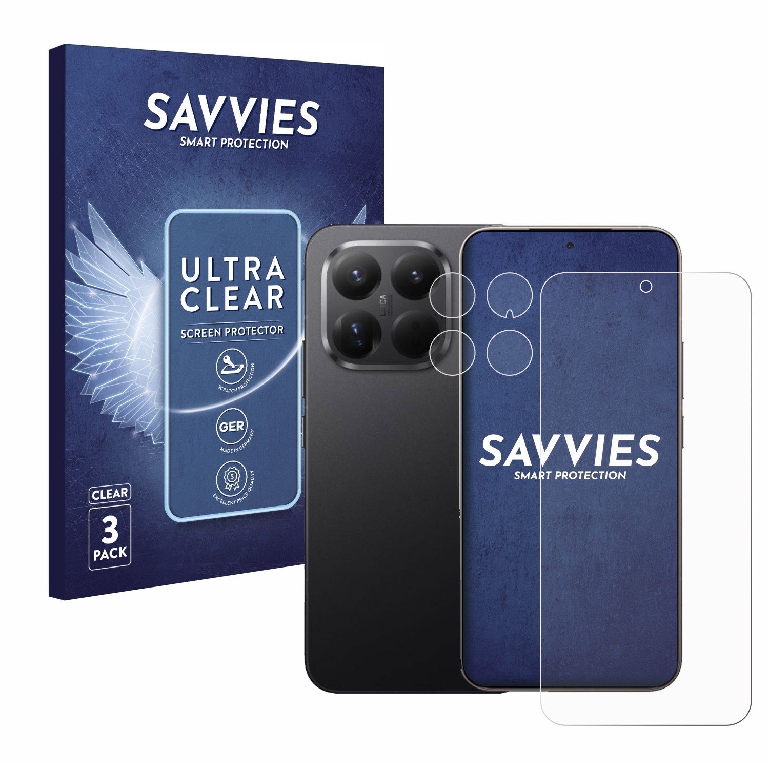 Savvies 3 Pack Tempered Glass Film compatible with Xiaomi 15T Pro (Front+Camera) 9H Screen Protector, Glass-Foil, HD-Clear, Bubble-Free, Anti-Fingerprint, Anti-Scratch, Armor Protection Film