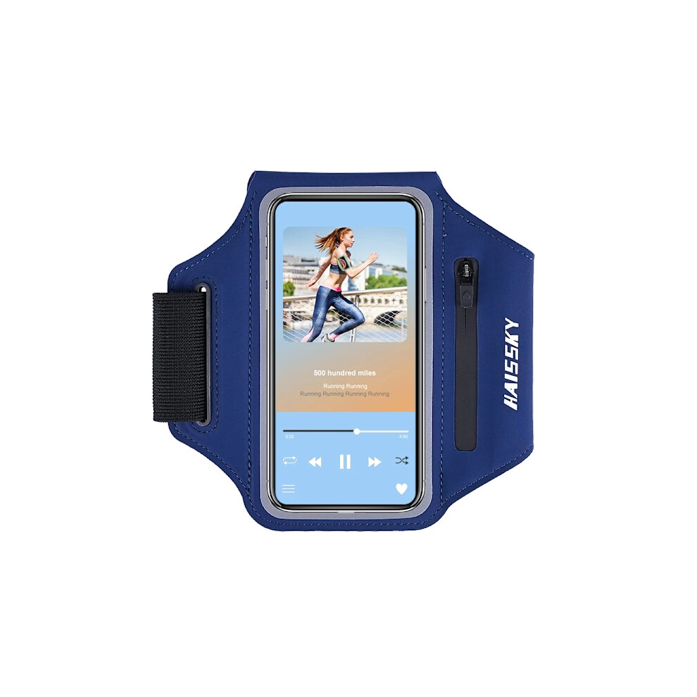 HAISSKY 6.5" Sports Armband Case compatible with iPhone 15/14/13/12/11 Pro Max, AirPods Pro, Samsung S24, Xiaomi - Dark Blue