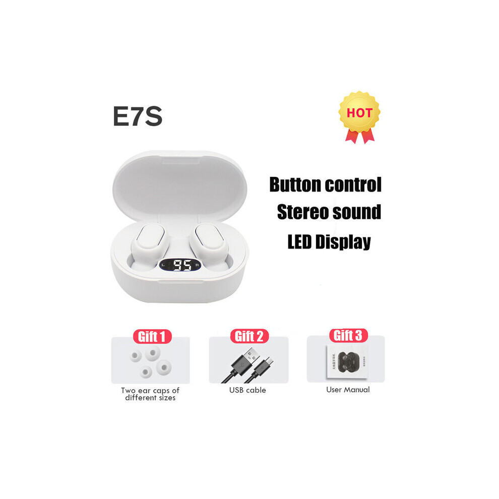(a-White Earbuds) TWS E7S Air Fone Bluetooth Earphones Wireless Headphones for Xiaomi Noise Cancelling Earbuds with Mic Wireless Bluetooth Headset