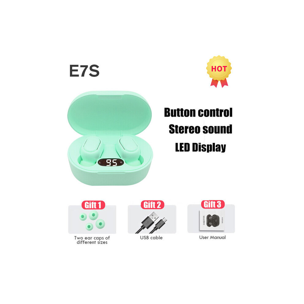 (a-Green Earbuds) TWS E7S Air Fone Bluetooth Earphones Wireless Headphones for Xiaomi Noise Cancelling Earbuds with Mic Wireless Bluetooth Headset